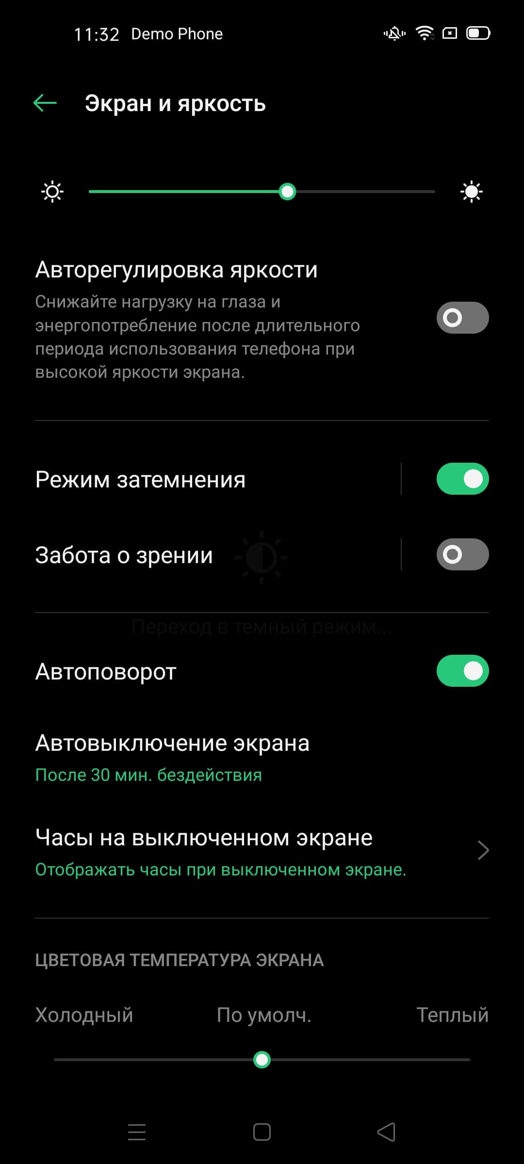 В ColorOS можно найти все, что необходимо, от поддержки управления жестами до игрового режима с оптимизацией работы системы во время игр. Имеется темная тема для всей системы вплоть до шторки уведомлений, а также детально настраиваемая функциональность оповещения Always On. Предустановленный магазин Google Play и сервисы Google на месте, чем сейчас могут похвалиться, к сожалению, не все.