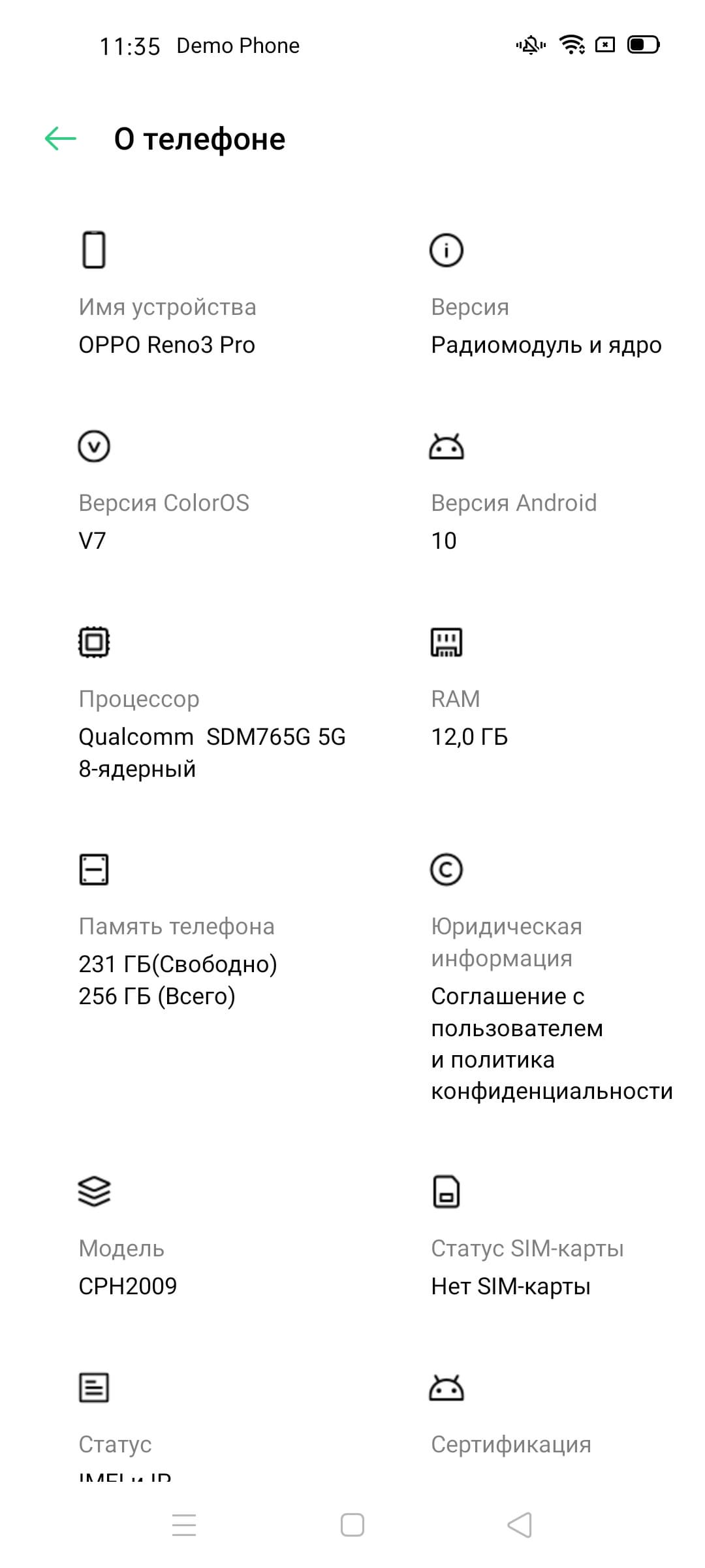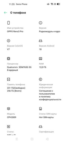 Основные характеристики Oppo Reno 3 Pro (модель CPH2009)