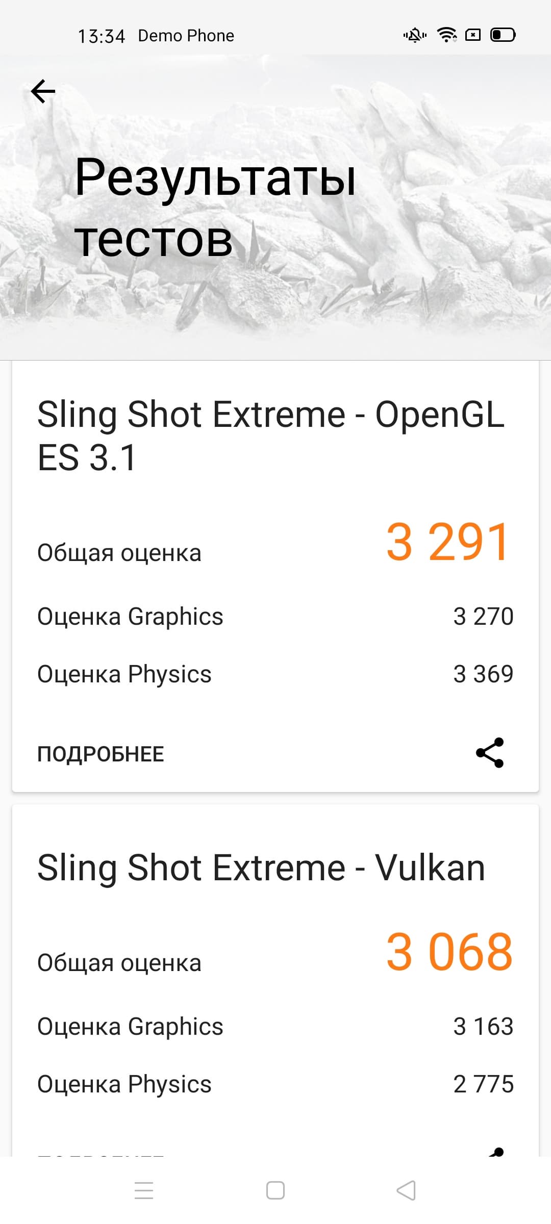 Snapdragon 765/765G — это не флагманская, но предтоповая платформа с высокими показателями в тестах и широкими возможностями. Во всех тестах, и комплексных, и, особенно, графических, она демонстрирует отличные, хотя и не максимальные результаты. В реальной жизни она справляется с любой задачей и с самыми требовательными играми, включая Modern Combat 3, Injustice 2 и PUBG при максимальном качестве графики, без малейших притормаживаний.