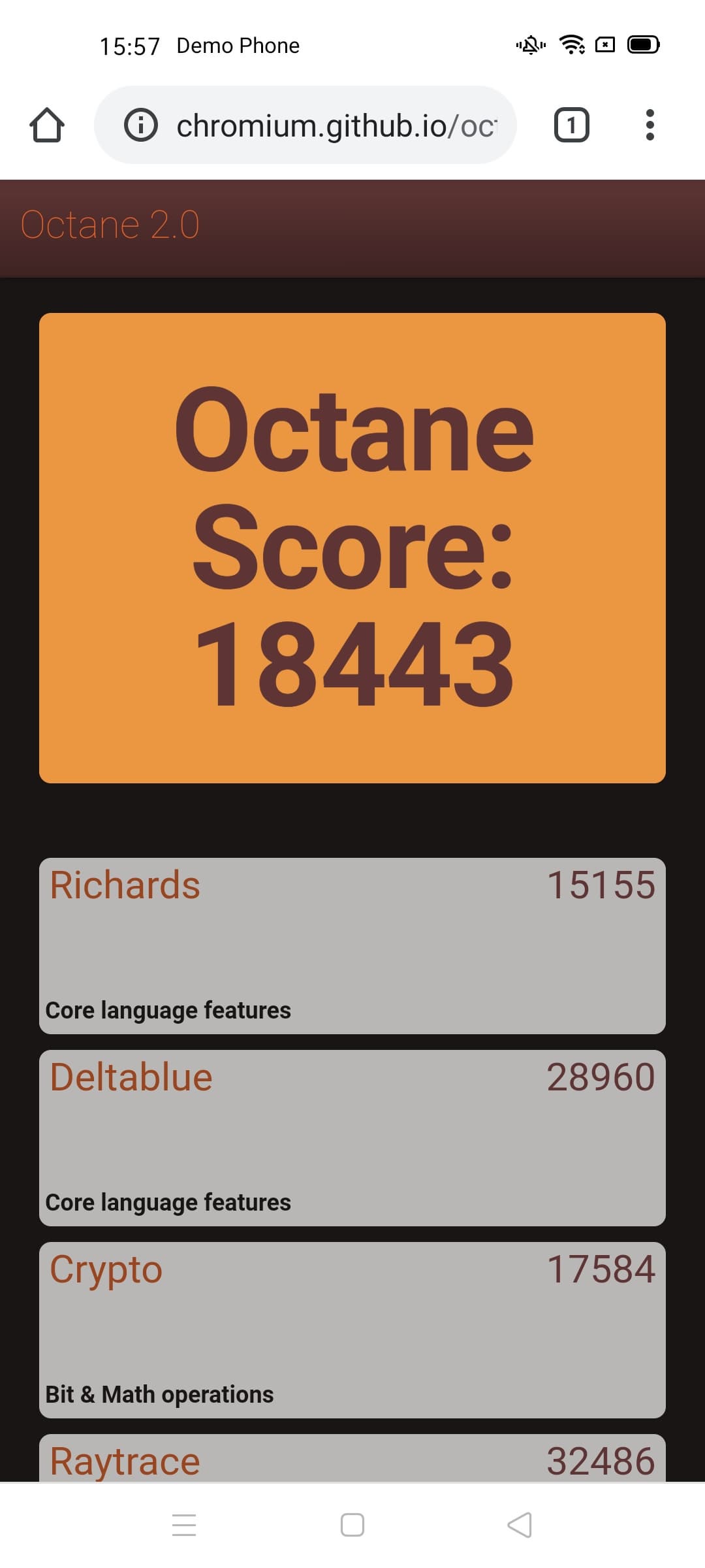 | Google Octane 2 (больше — лучше) | 18443 | 23398 | 22033 | 18267 | 24798 |