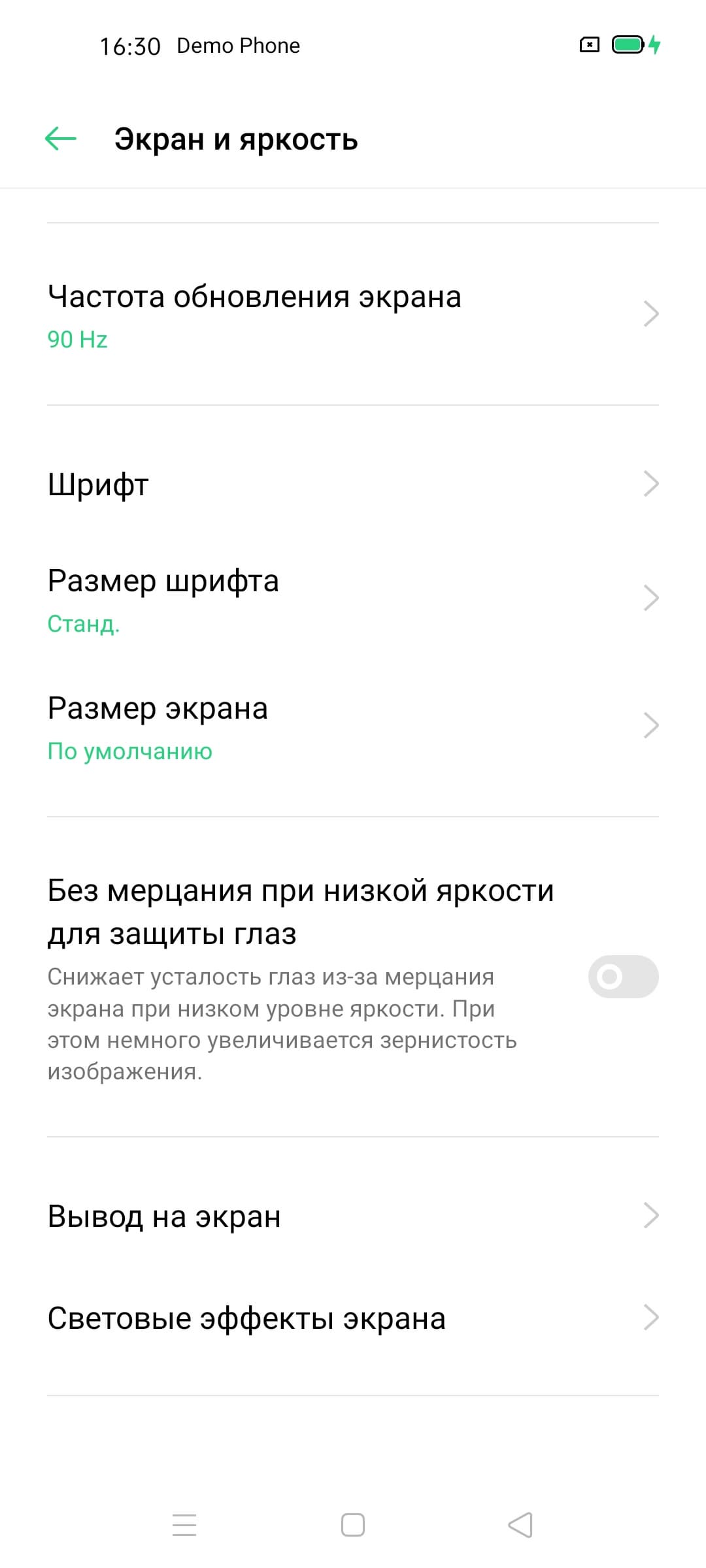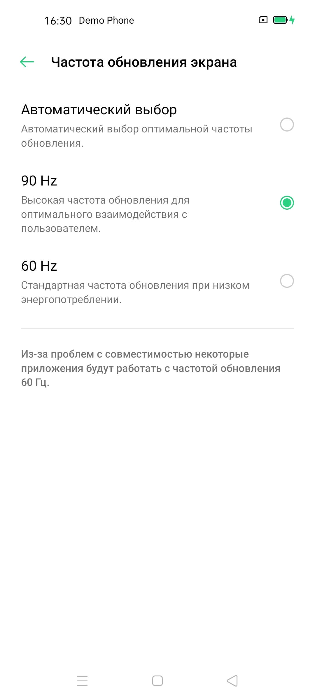 В настройках экрана можно включить режим с повышенной до 90 Гц частотой обновления: