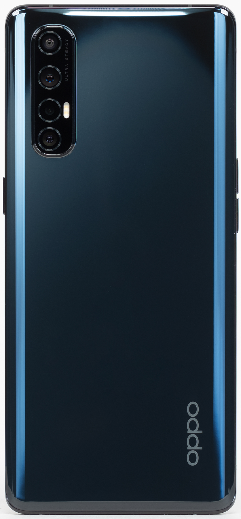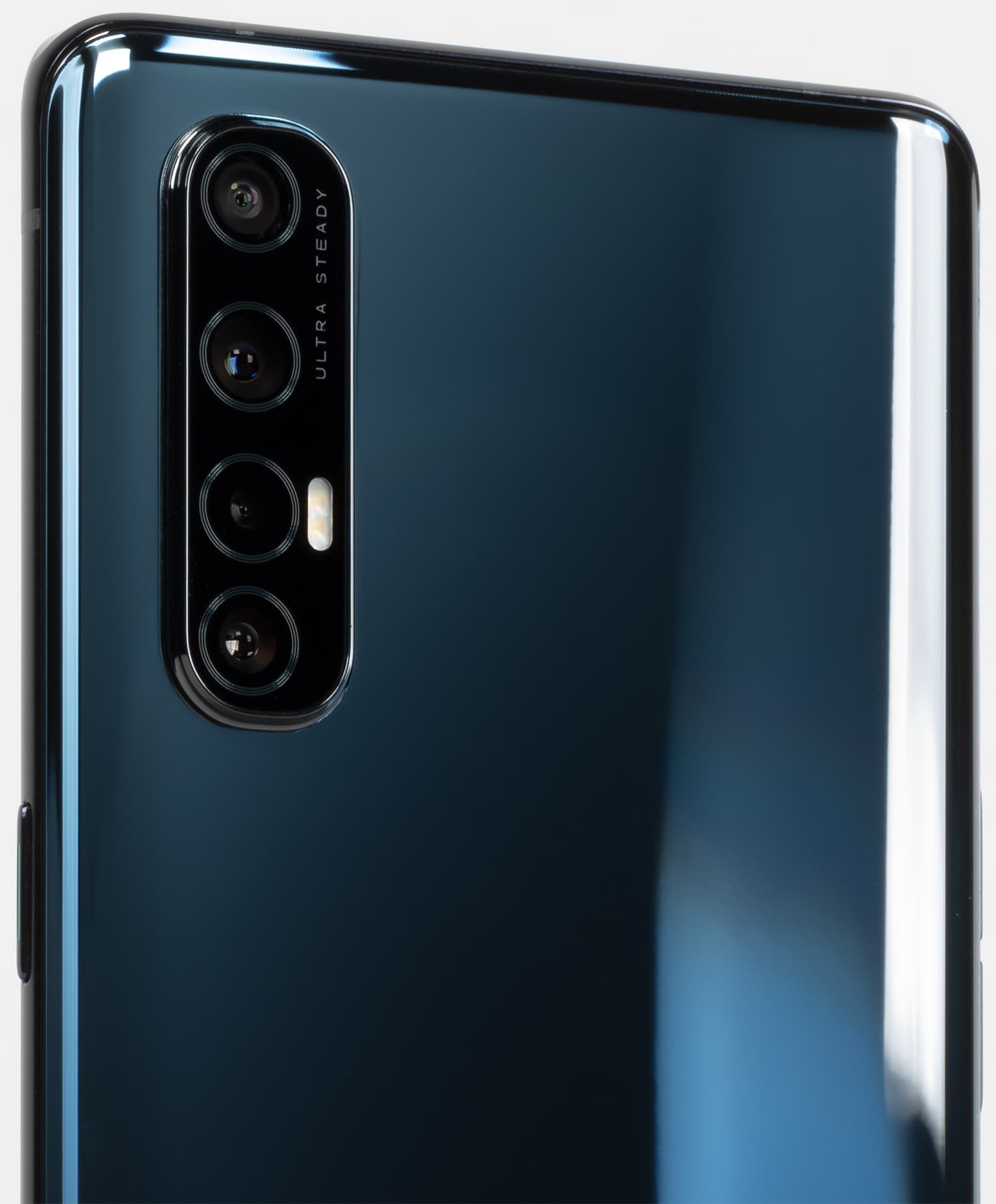 На тыльной стороне корпуса у Oppo Reno 3 Pro установлена «квадрокамера» — классический набор из обычного, широкоугольного и телемодуля, дополненный сенсором глубины резкости с невысоким разрешением: