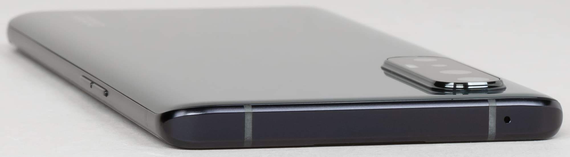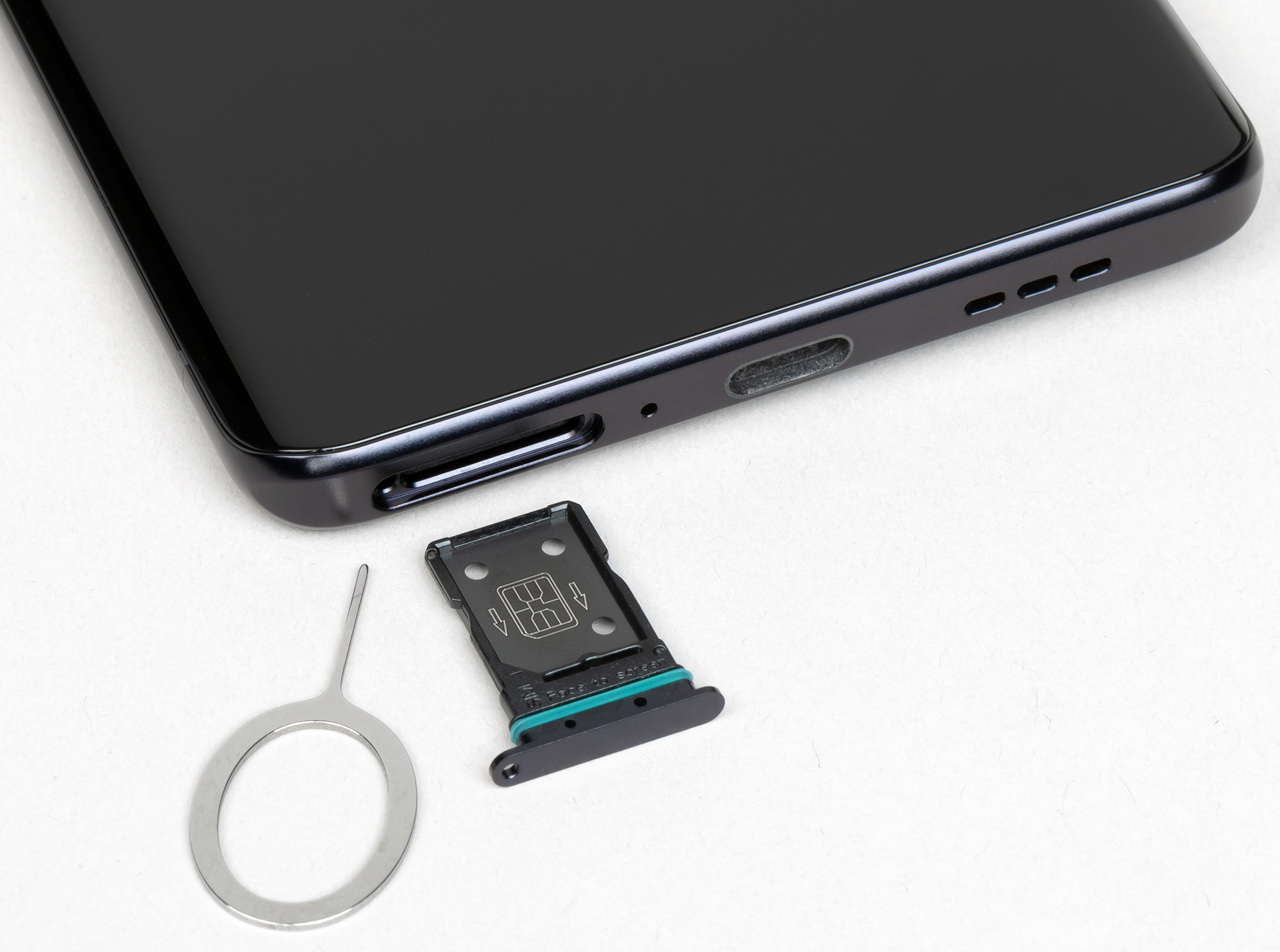 В нижнем торце установлены основной динамик, разговорный микрофон, разъем USB Type-C. На верхнем торце можно найти лишь второй микрофон. 3,5-миллиметрового аудиовыхода для наушников у смартфона нет.