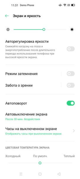 В этом устройстве есть возможность скорректировать цветовой баланс с помощью регулировки оттенка настройкой Цветовая температура экрана: