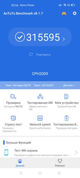 | AnTuTu (v8.x) (больше — лучше) | 315595 | 570315 | 455506 | 510375 | 488908 |