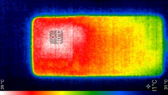 Нагрев больше в верхней части аппарата, что, видимо, соответствует расположению микросхемы SoC. По данным теплокамеры, максимальный нагрев составил 40 градусов (при температуре окружающего воздуха в 24 градуса), это средний нагрев в данном тесте для современных смартфонов.