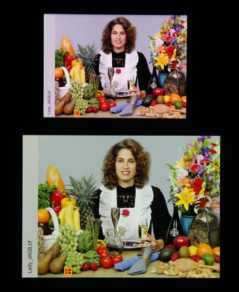 Отметим, что на экранах с широким цветовым охватом без соответствующей коррекции цвета обычных изображений, оптимизированных для устройств sRGB, выглядят неестественно насыщенными. Отсюда и рекомендация: в большинстве случаев смотреть кино, фотографии и все естественное лучше при выборе профиля Нежность. Профиль Яркие цвета уместен при просмотре материала с охватом DCI-P3, принятым в цифровом кинематографе, но в быту встречающимся редко.