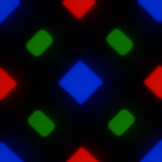 На фрагменте выше можно насчитать 4 зеленых субпикселя, 2 красных (4 половинки) и 2 синих (1 целый и 4 четвертушки), при этом, повторяя эти фрагменты, можно выложить весь экран без разрывов и перехлеста. Для таких матриц компания Samsung ввела наименование PenTile RGBG. Разрешение экрана производитель считает по зеленым субпикселям, по двум другим оно будет в два раза ниже. Разумеется, присутствуют некоторая неровность контрастных границ и другие артефакты. Впрочем, из-за высокого разрешения они лишь минимально сказываются на качестве изображения.