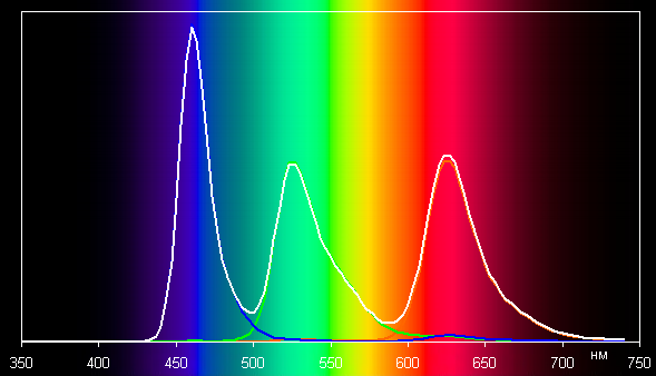 В случае профиля Яркие цвета спектры компонент очень хорошо разделены (но небольшое подмешивание есть), что и позволяет получить широкий охват: