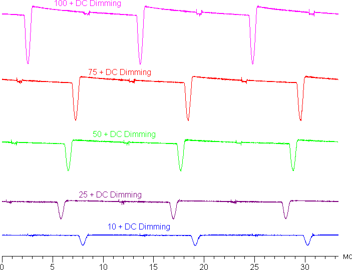 Видно, что на высокой и средней яркости частота модуляции увеличилась в 1,5 раза, а на низкой яркости характер модуляции не изменился.