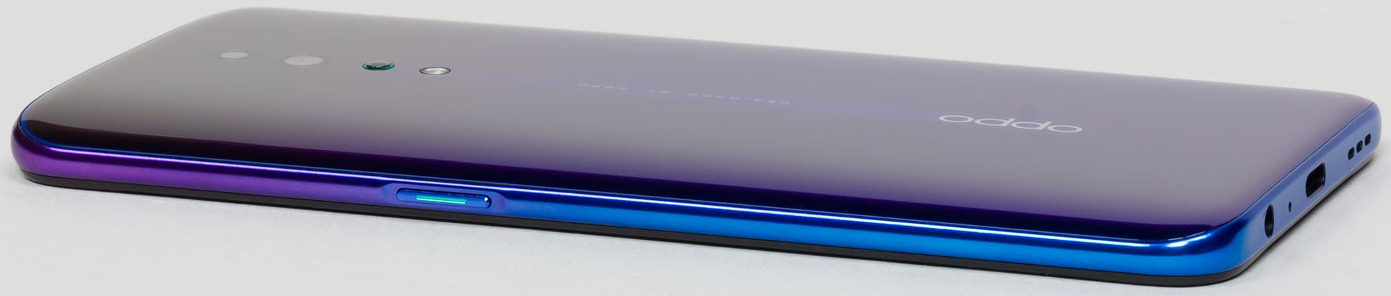 Oppo Reno Z выпускается в двух цветах: «Черный графит» и «Пурпурный рассвет». Полноценной защиты от пыли и влаги корпус смартфона не получил.