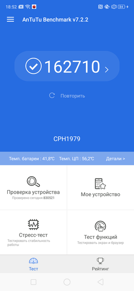 | AnTuTu (v7.x) (больше — лучше) | 162710 | 210497 | 166849 | 141172 | 306438 |