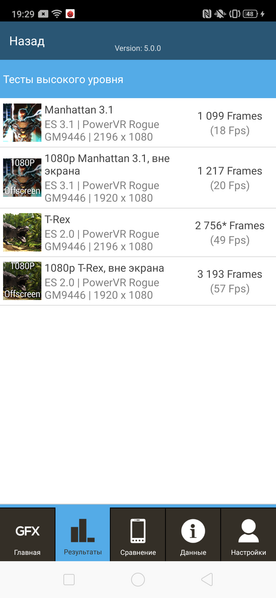 Все результаты, полученные нами при тестировании смартфона в самых свежих версиях популярных бенчмарков, мы для удобства свели в таблицы. В таблицу обычно добавляется несколько других аппаратов из различных сегментов, также протестированных на аналогичных последних версиях бенчмарков (это делается лишь для наглядной оценки полученных сухих цифр). К сожалению, в рамках одного сравнения нельзя представить результаты из разных версий бенчмарков, поэтому «за кадром» остаются многие достойные и актуальные модели — по причине того, что они в свое время проходили «полосу препятствий» на предыдущих версиях тестовых программ.