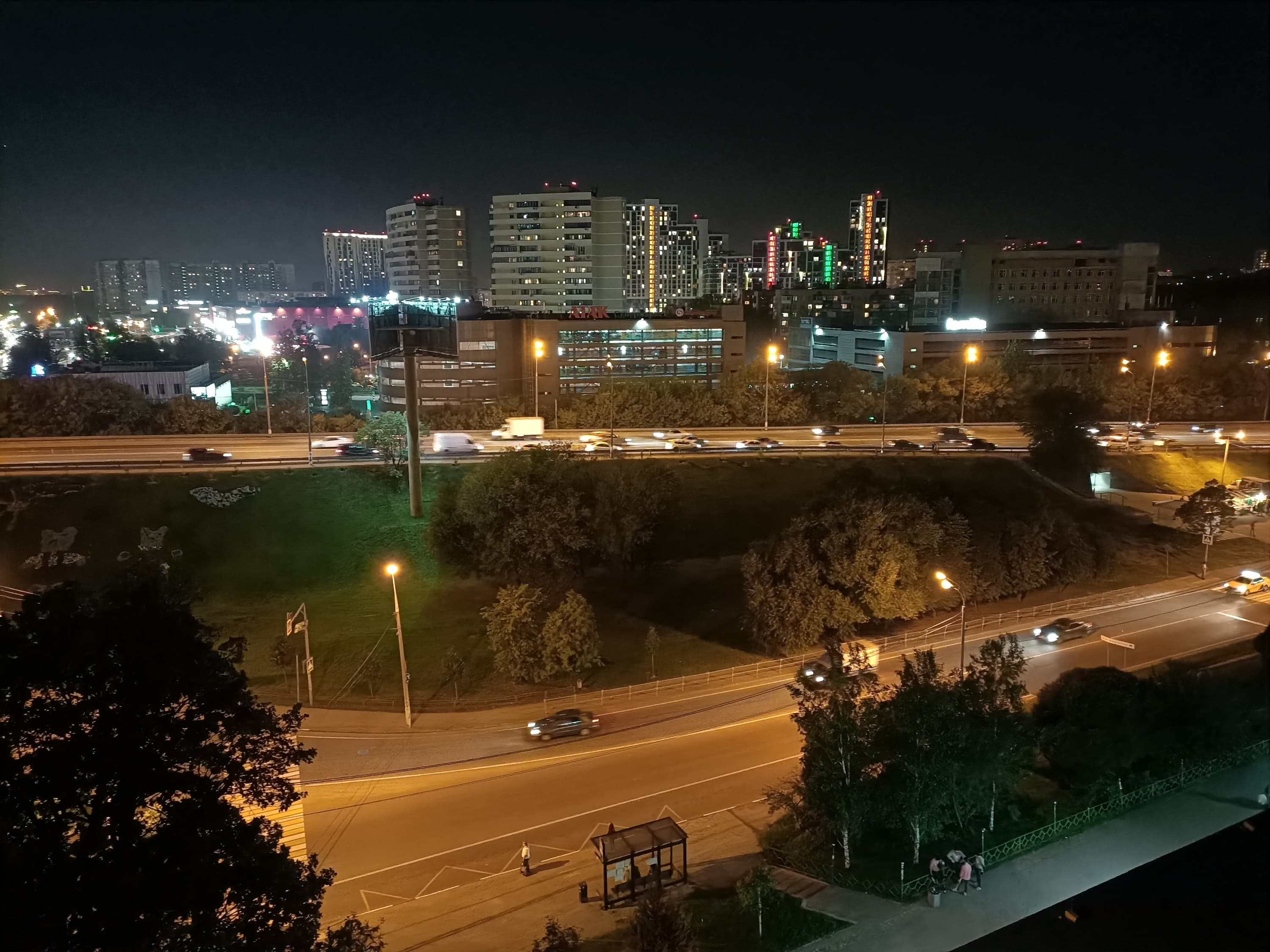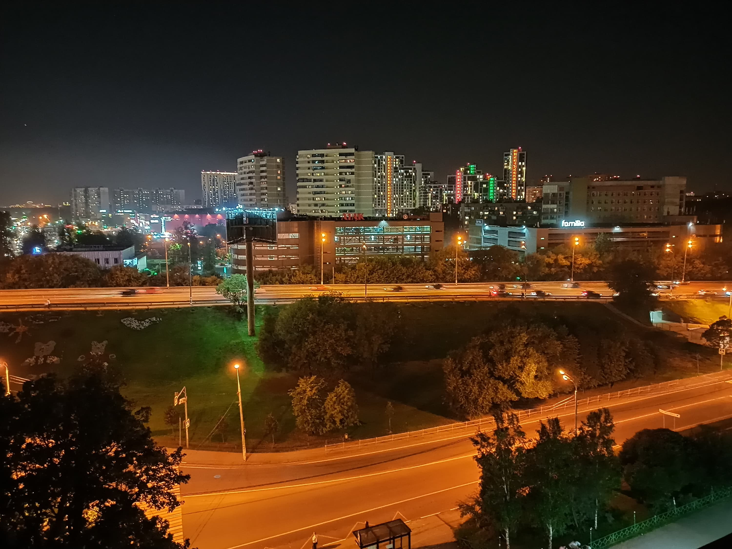 Качество съемки уверенное среднее. Здесь есть где разгуляться алгоритмам обработки фотографий, и найден удачный баланс их применения: шумы в основном вычищены, остатки не бросаются в глаза, но при этом картинка не доводится до уровня пластилиновой мазни, какие-то детали сохраняются. Помнится, мы уже хвалили последние поколения камер Mediatek за прогресс в их подходе к обработке. В результате снимки могут похвастать равномерной (хотя и не рекордной) детализацией по всему полю кадра, нормальными цветами, отсутствием геометрических искажений. Вот с ночными снимками что-то пошло не так: в обычном режиме снимки при недостатке освещения ожидаемо слабые, но есть специализированный ночной режим с многокадровой технологией шумоподавления, как в лучших домах Маунтин-Вью. Однако на практике в этом ночном режиме фотографии значительно теряют и без того невысокую детализацию, хотя действительно получаются более светлыми и удачнее рисуют огни большого города. Надеемся, что тут возможны программные улучшения.