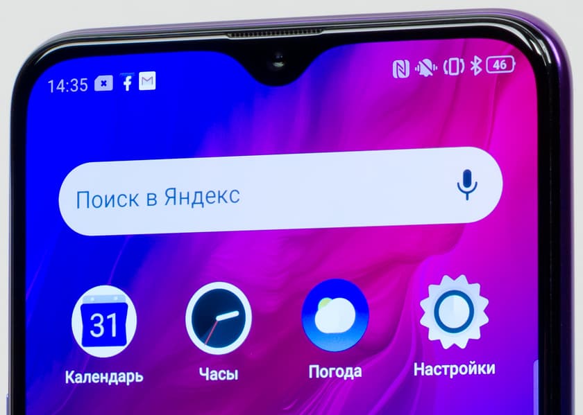 Фронтальная камера привычно упрятана в вырез в экране, это современный каплевидный вырез, а не широкая «челка». Впрочем, последние веяния моды уже вовсе убрали фронтальную камеру в выдвижной модуль, но в случае с семейством Reno такой модный модуль достался лишь старшей премиальной версии Reno 10x Zoom.
