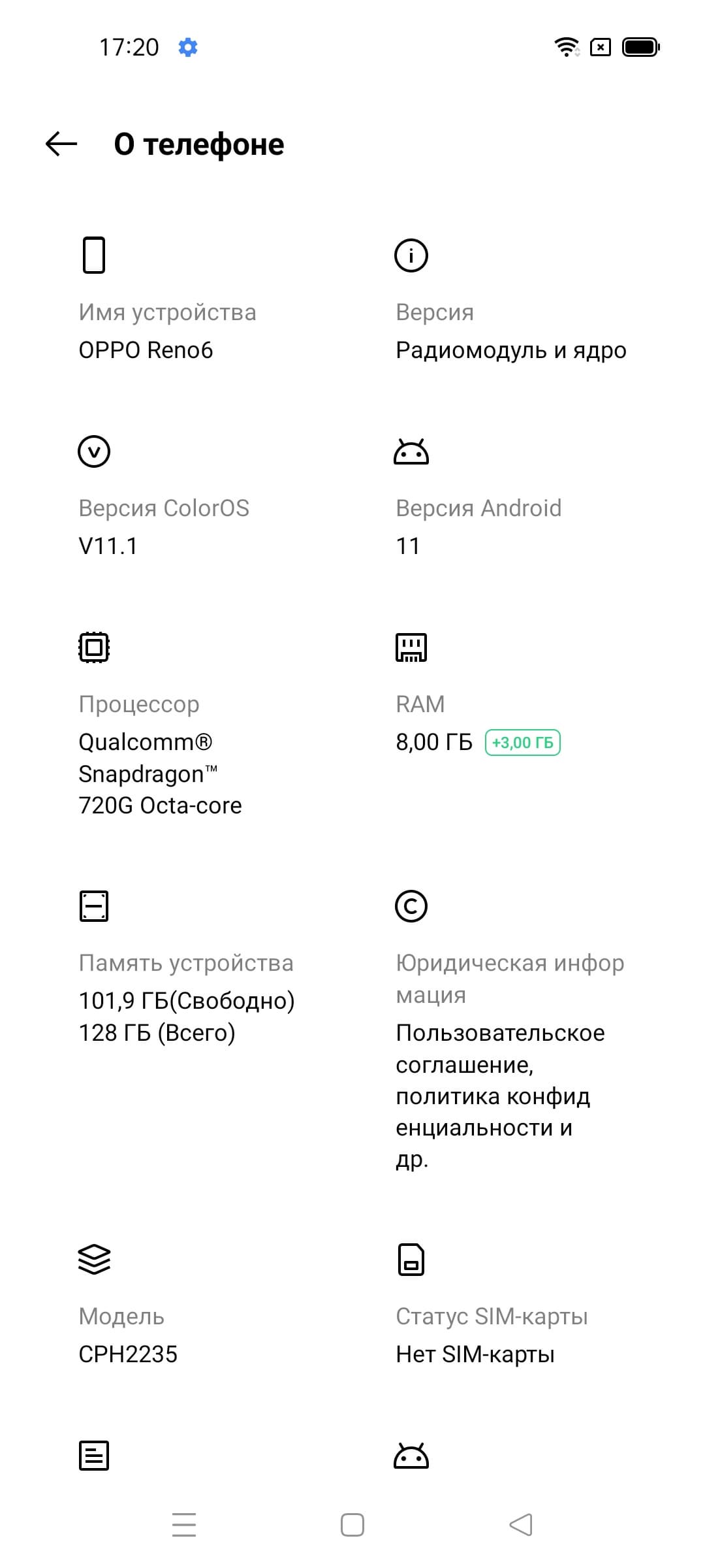 Смартфон получил одну из ранних SoC серии Snapdragon 700. Серия в целом весьма удачная, но именно Snapdragon 720G уже откровенно старенькая и слабенькая. Ей на смену пришли более шустрые Snapdragon 732G и Snapdragon 778G, которые куда интереснее в тестах. При этом цены смартфонов на этих более современных SoC не выше, чем у Oppo Reno6. В общем, это довольно неожиданный ход со стороны Oppo: выпустить к концу 2021 года обновление своей самой популярной линейки Reno на том же процессоре, на котором были выпущены Reno4 и Reno5.