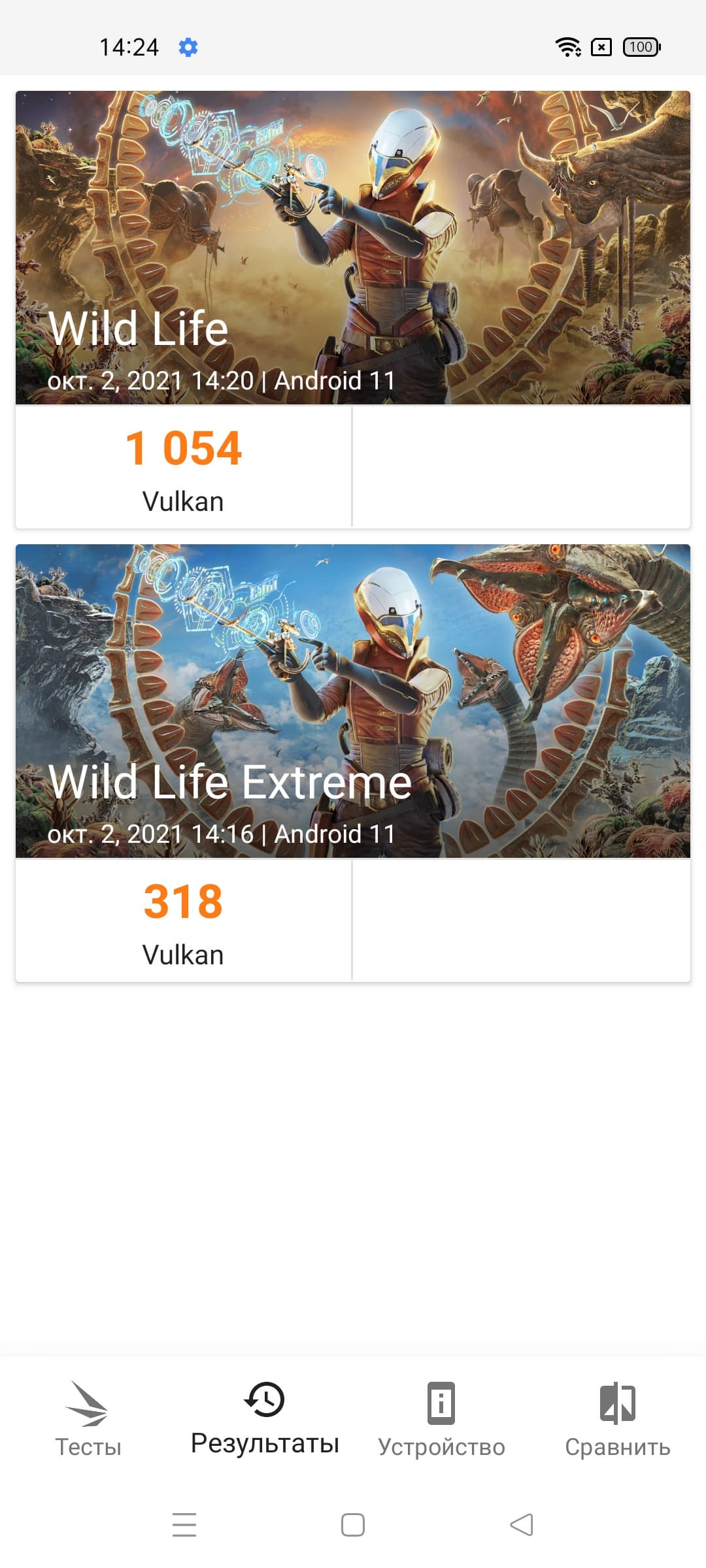 | 3DMark Wild Life Vulkan (больше — лучше) | 1054 | 2504 | 1118 | 1508 | 1088 |