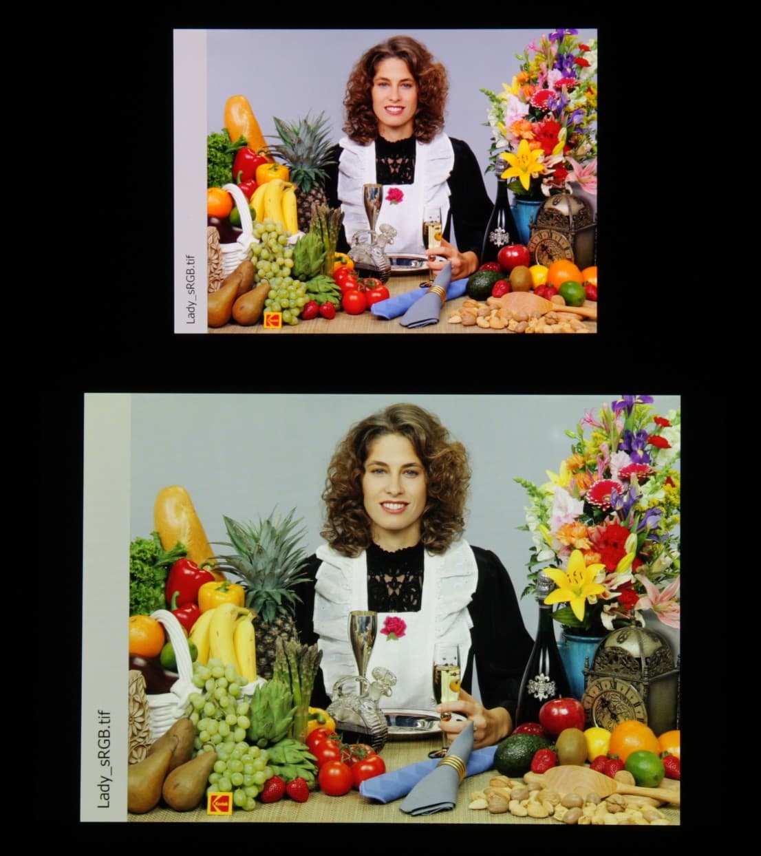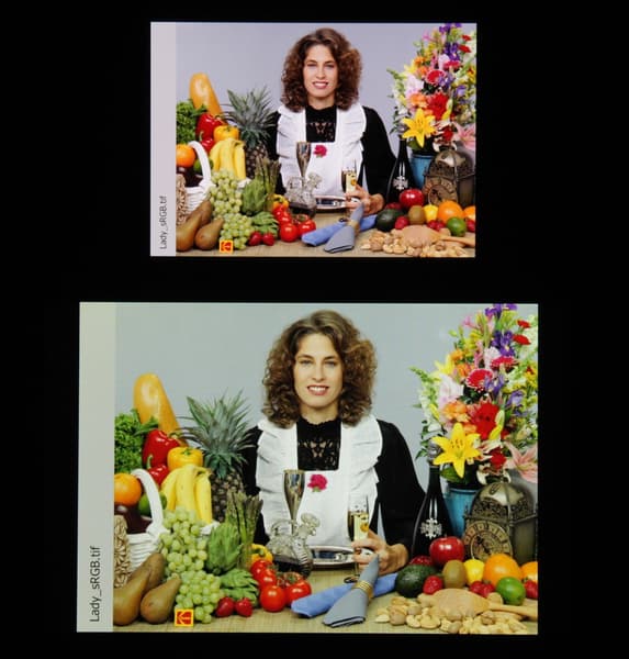 Отметим, что на экранах с широким цветовым охватом без соответствующей коррекции цвета обычных изображений, оптимизированных для устройств sRGB, выглядят неестественно насыщенными. Отсюда и рекомендация: в большинстве случаев смотреть кино, фотографии и все естественное лучше при выборе профиля Нежность. Профиль Яркие цвета уместен при просмотре материала с охватом DCI-P3, принятым в цифровом кинематографе, но в быту встречающимся редко.
