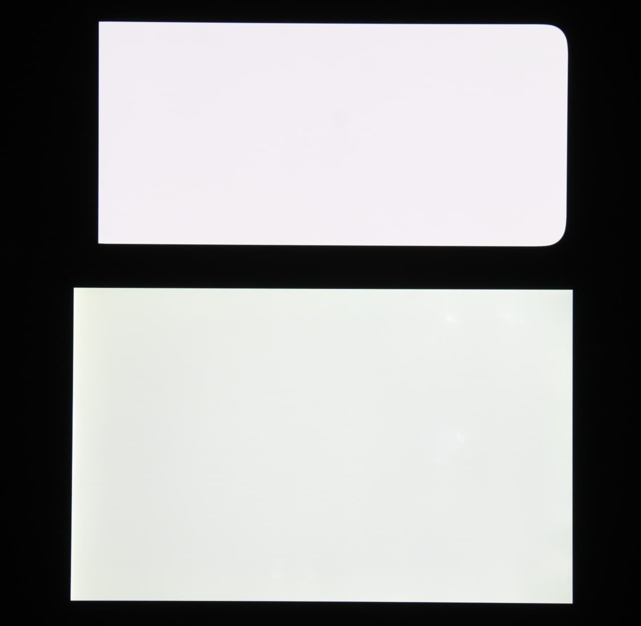 Яркость под углом у обоих экранов заметно уменьшилась (чтобы избежать сильного затемнения, выдержка увеличена в сравнении с предыдущими фотографиями), но в случае Oppo Reno6 падение яркости меньше. В итоге при формально одинаковой яркости экран Oppo Reno6 визуально выглядит гораздо более ярким (в сравнении с ЖК-экранами), так как на экран мобильного устройства часто приходится смотреть как минимум под небольшим углом.