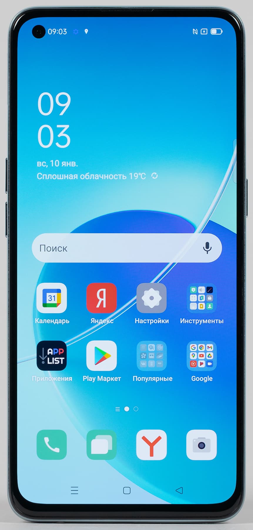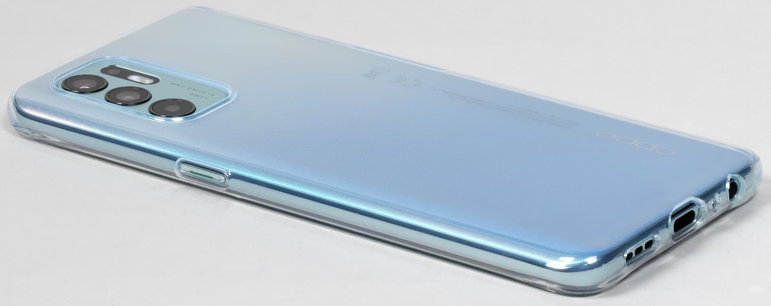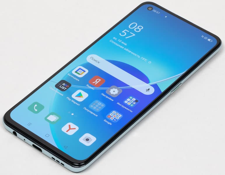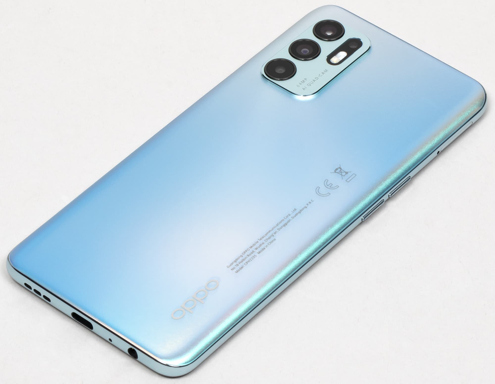 Смартфон Oppo Reno6 выпускается в двух цветовых вариантах: черном и «лазурном». Корпус не получил полноценной защиты от воды и пыли.