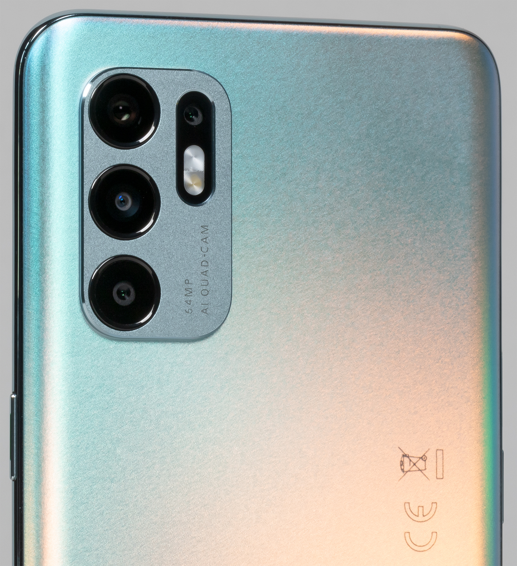 Сзади у Oppo Reno6 установлено, в худших традициях современности, аж четыре модуля камер, два из которых исполняют роль «заглушек» и, в сущности, бесполезны, они просто нагоняют пыли в глаза неискушенному покупателю. Снимают здесь лишь две камеры — основная и широкоугольная; телеобъектива, реализующего оптическое приближение, тут нет. В отношении настоящих флагманов производители себе такого позволить не могут, но в среднем сегменте пока еще царит подобное «очковтирательство»: