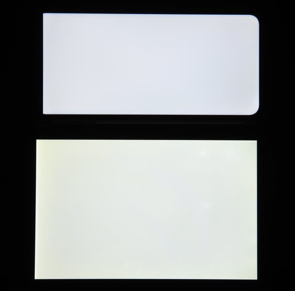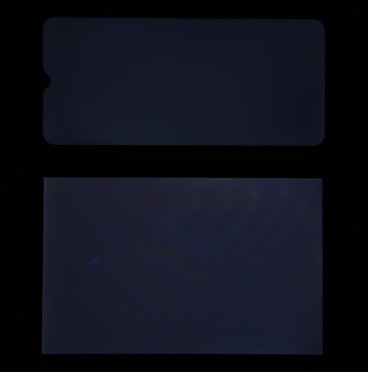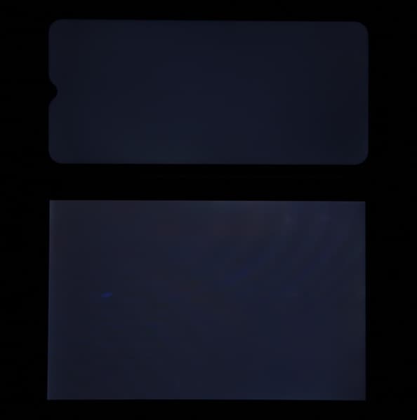 При перпендикулярном взгляде равномерность черного поля хорошая (для наглядности яркость подсветки на смартфоне увеличена):
