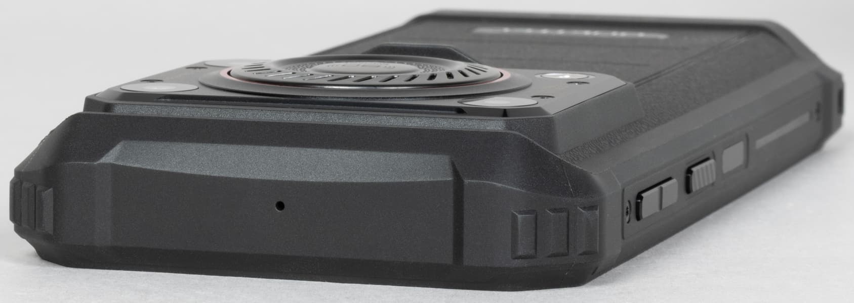 Все разъемы наглухо прикрыты резиновыми заглушками. Соответствие стандарту IP68 означает, что корпус смартфона водонепроницаем на глубине до 1,5 метров в течение 30 минут и защищен от попадания внутрь пыли, грязи и песка. Также гарантируется защита при падениях с высоты до 1,5 м, есть защита по военному стандарту MIL-STD-810H.