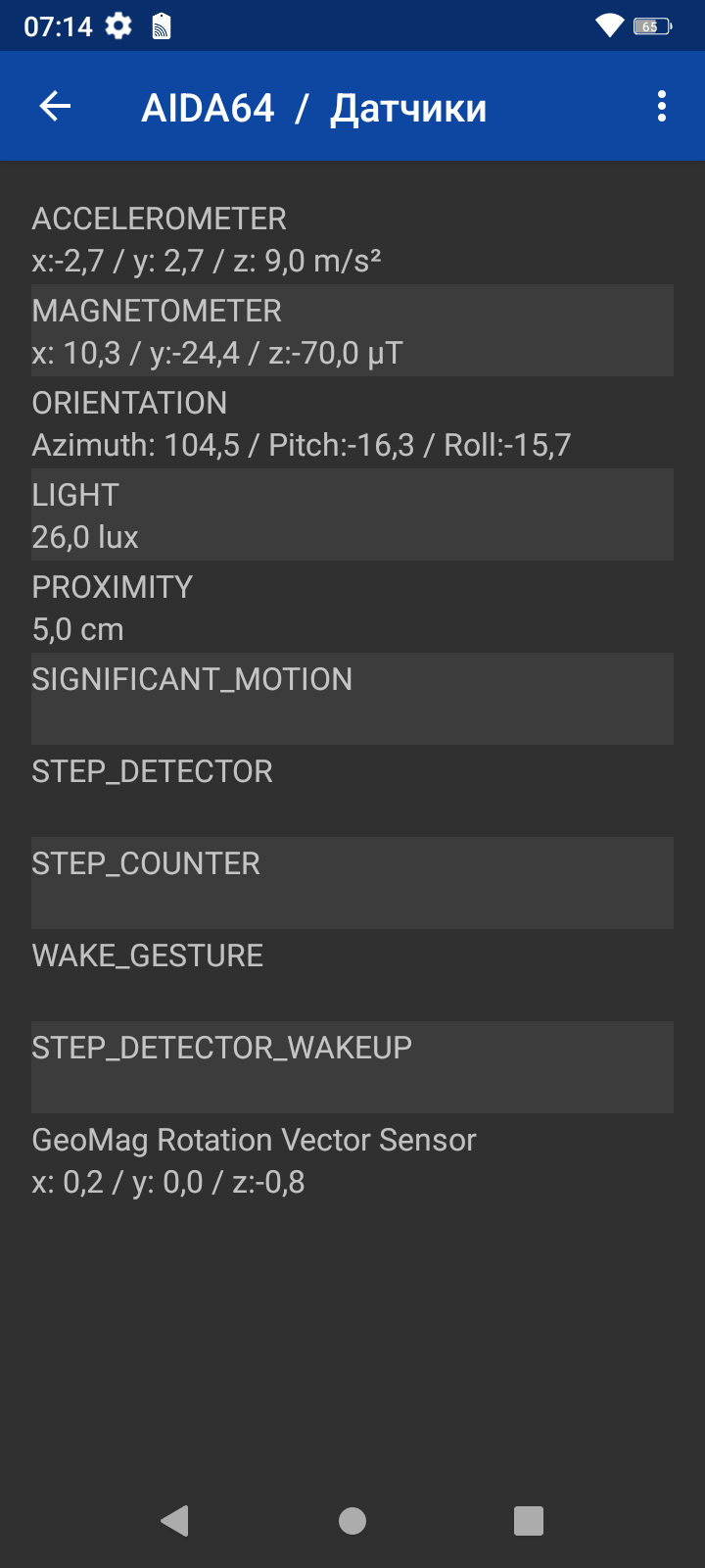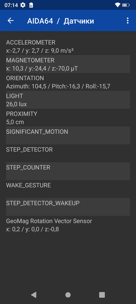 Голос собеседника в динамике громкий и разборчивый. Вибромотор средний. А вот набор встроенных датчиков самый базовый. Среди них не нашлось даже гироскопа, не говоря уже о барометре. И это в смартфоне-«внедорожнике»-то, где набор сенсоров должен быть, наоборот, расширен.