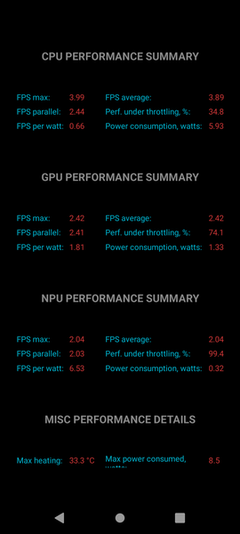 Тест на снижение производительности при нагреве мы проводим с помощью программы Burnout Benchmark, которая позволяет нагружать CPU, GPU и NPU: