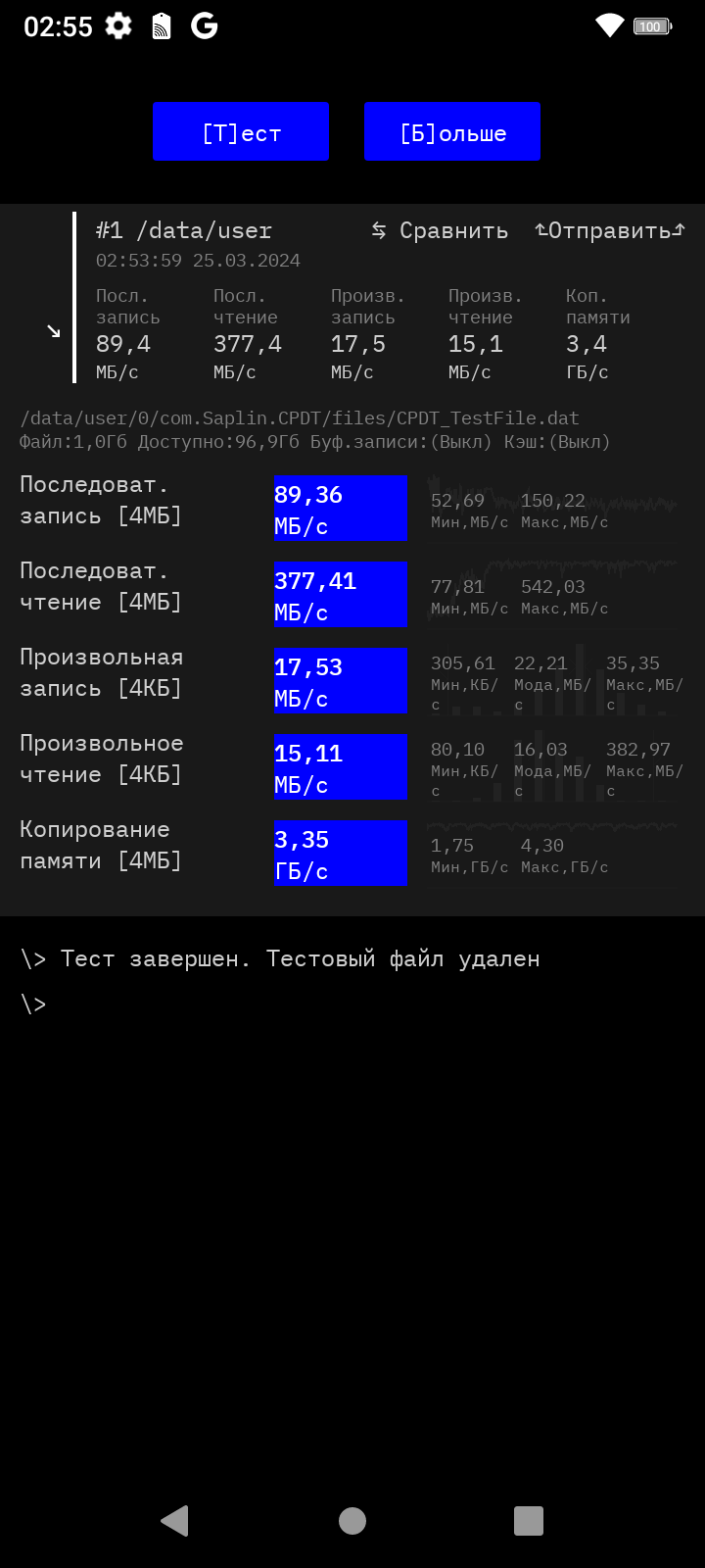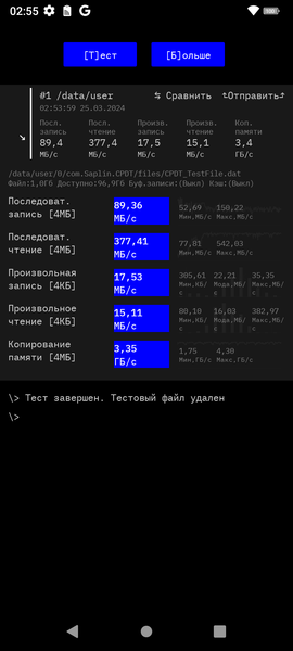Результаты тестов на скорость работы с памятью: