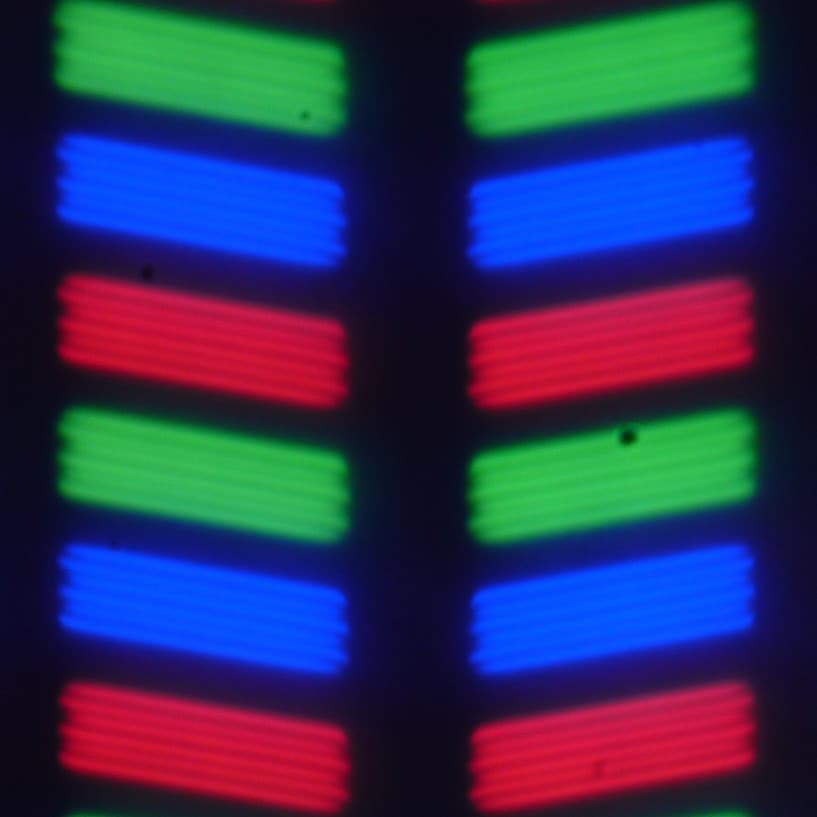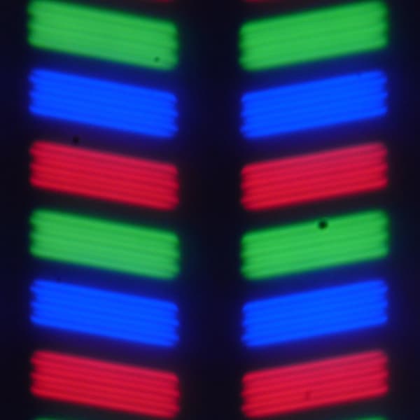В данном смартфоне используется матрица типа IPS. Микрофотографии демонстрируют типичную для IPS структуру субпикселей: