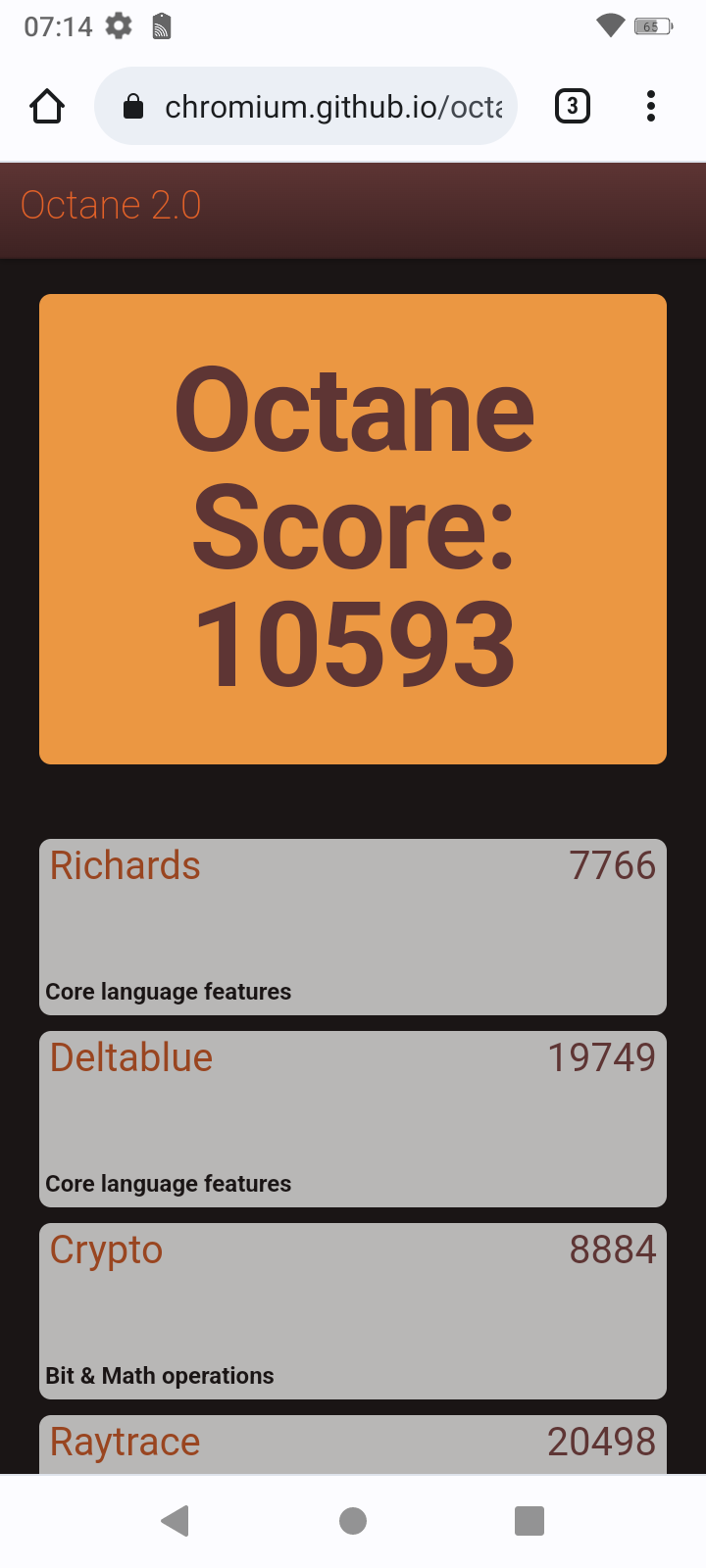 | Google Octane 2 (больше — лучше) | 10593 | 18786 | 22823 | 22282 | 27070 |
