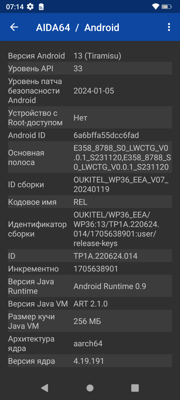 В качестве программной платформы смартфон Oukitel WP36 использует практически чистую ОС Android версии 13. Добавлено несколько утилит, которыми обычно комплектуются смартфоны-внедорожники: компас, отвес, измеритель высоты, фонарик, транспортир, уровень, сигнал тревоги, диктофон, даже некое подобие увеличительного стекла. Есть FM-радио, но без наушников оно, вполне типично, не работает. Есть также детский и игровой режимы. Надо только не забыть выключить печально известный «глушитель приложений» DuraSpeed, иначе программы неожиданно будут выкидываться им из оперативной памяти.
