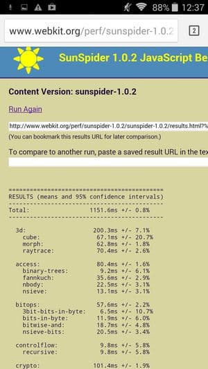Что касается бенчмарков для оценки скорости движка javascript, то стоит всегда делать скидку на то, что в них результаты существенно зависят от браузера, в котором запускаются, так что сравнение может быть истинно корректным только на одинаковых ОС и браузерах, а такая возможность имеется при тестировании не всегда. В случае с ОС Android мы всегда стараемся использовать Google Chrome.