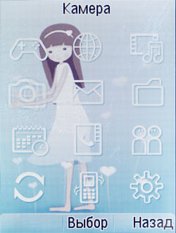 Для оформления телефона можно использовать три предустановленные темы или менять элементы оформления по-отдельности на свое усмотрение. Темы различаются степенью «анимированности»: от практического отсутствия до пугающей живости. По умолчанию установлена тема с белыми сердечками на голубом фоне и обнимающейся с элементами меню девочкой. И поскольку на вкус и цвет товарищей искать не принято, мы воздержимся от оценки увиденного нами оформления.