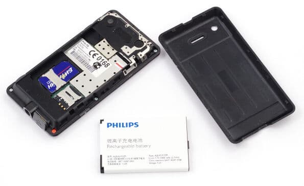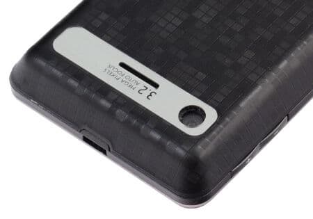 Под задней крышкой был обнаружен аккумулятор емкостью 1000 мА·ч, что в свете рекламы «Месяц без подзарядки» показалось весьма малым объемом. Но это не единственная из удививших нас черт: карта памяти microSD затаилась рядом с SIM-картой под батареей, лишив пользователя малейшего шанса на оперативную замену накопителя.