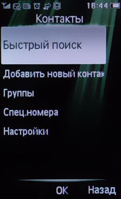 Для меню быстрого набора можно выбирать контакты из записной книжки телефона или SIM-карты. Запомнить аппарат может до четырех номеров и будет отображать их на отдельном рабочем столе.