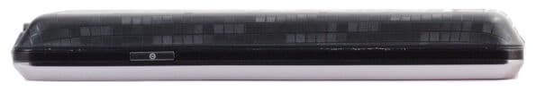 Лицевая сторона оригинальностью дизайна не отличилась: фактически, это прямоугольник в хромированной пластиковой рамке с минимальным закруглением углов. Если же приглядеться более внимательно, то вы заметите пару интересных штрихов: сенсорную клавишу под разговорным динамиком и отсутствие правой аппаратной кнопки внизу.