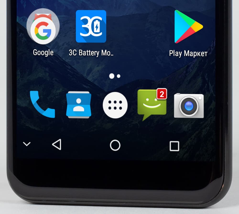 В нижней части под экраном аппаратных кнопок нет, так что нет и проблемы с отсутствием их подсветки. Между тем, места внизу под экраном довольно много, это отнюдь не модный современный вариант Full View.