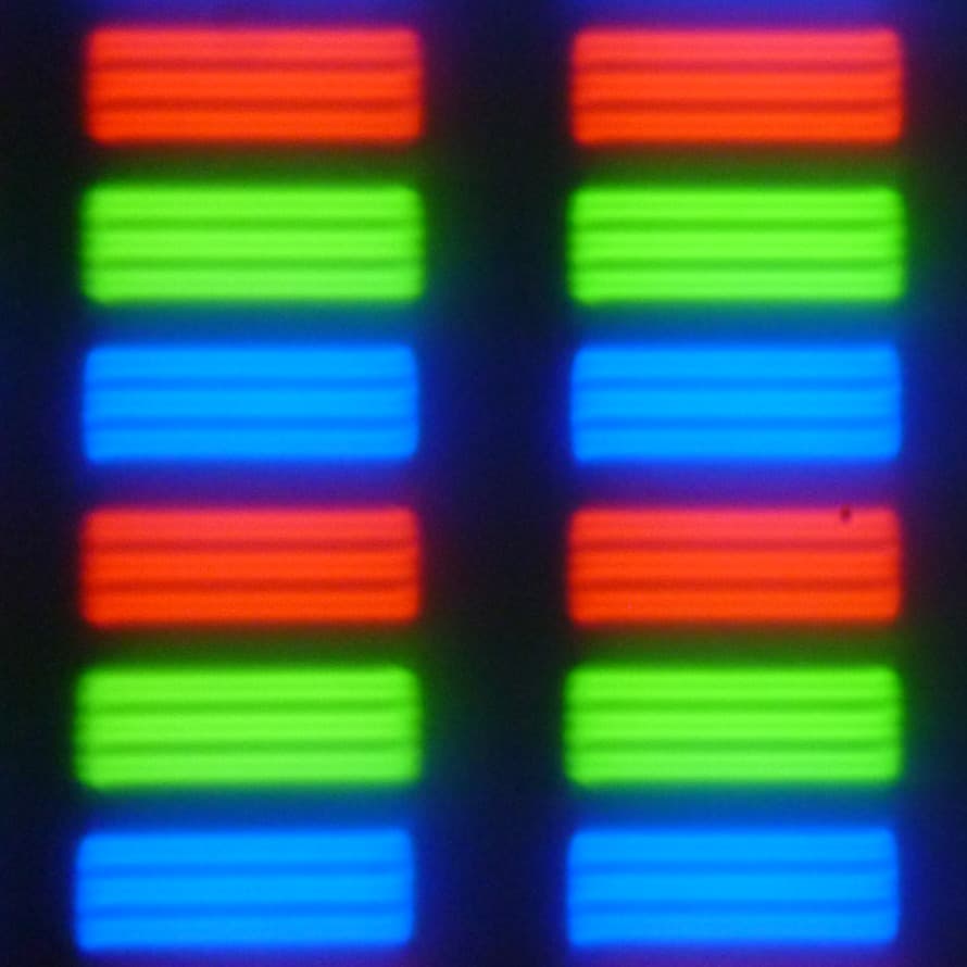 В данном смартфоне используется матрица типа IPS. Микрофотографии демонстрируют типичную для IPS структуру субпикселей:
