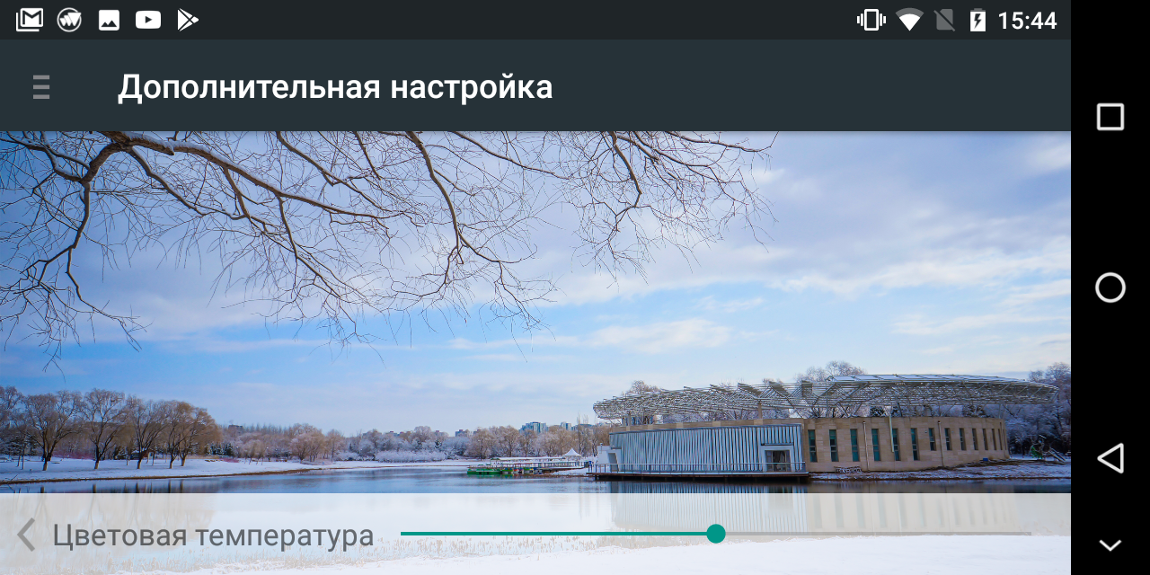 Впрочем, попытки исправить с ее помощью цветовой баланс не увенчались успехом, так как коррекция цветовой температуры приводит к тому, что оттенок полутонов меняется, а точка белого — почти нет, смотрится это плохо.