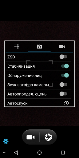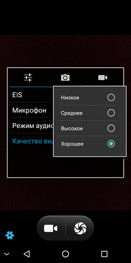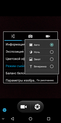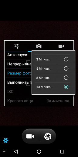 Интерфейс управления камерой хорошо знаком по мобильным аппаратам на платформах MediaTek, поставляемым без собственных оболочек. Это простенькое меню разбито на три вкладки, где можно выбрать разрешение для фото-, но не для видеосъемки (для видео имеются лишь «определения»: низкое, среднее, высокое и хорошее). Также можно выбирать из массы сценических режимов или вручную выставлять светочувствительность, баланс белого, экспокоррекцию, резкость, яркость и контрастность. Имеется даже режим HDR, а вот штатной возможности сохранения снимков в RAW нет.