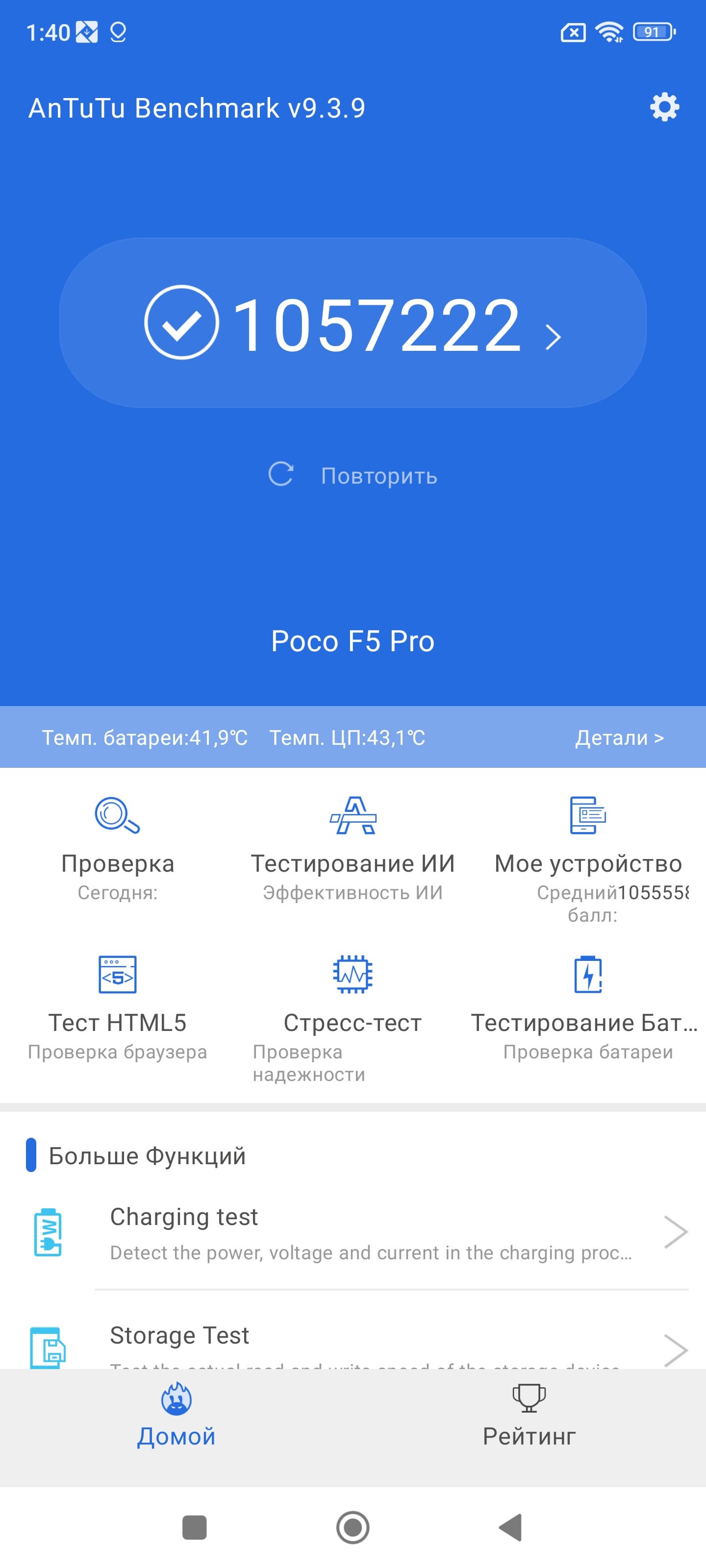 | AnTuTu (v9.x) (больше — лучше) | 1057222 | 1310507 | 788102 | 835915 | 815296 |