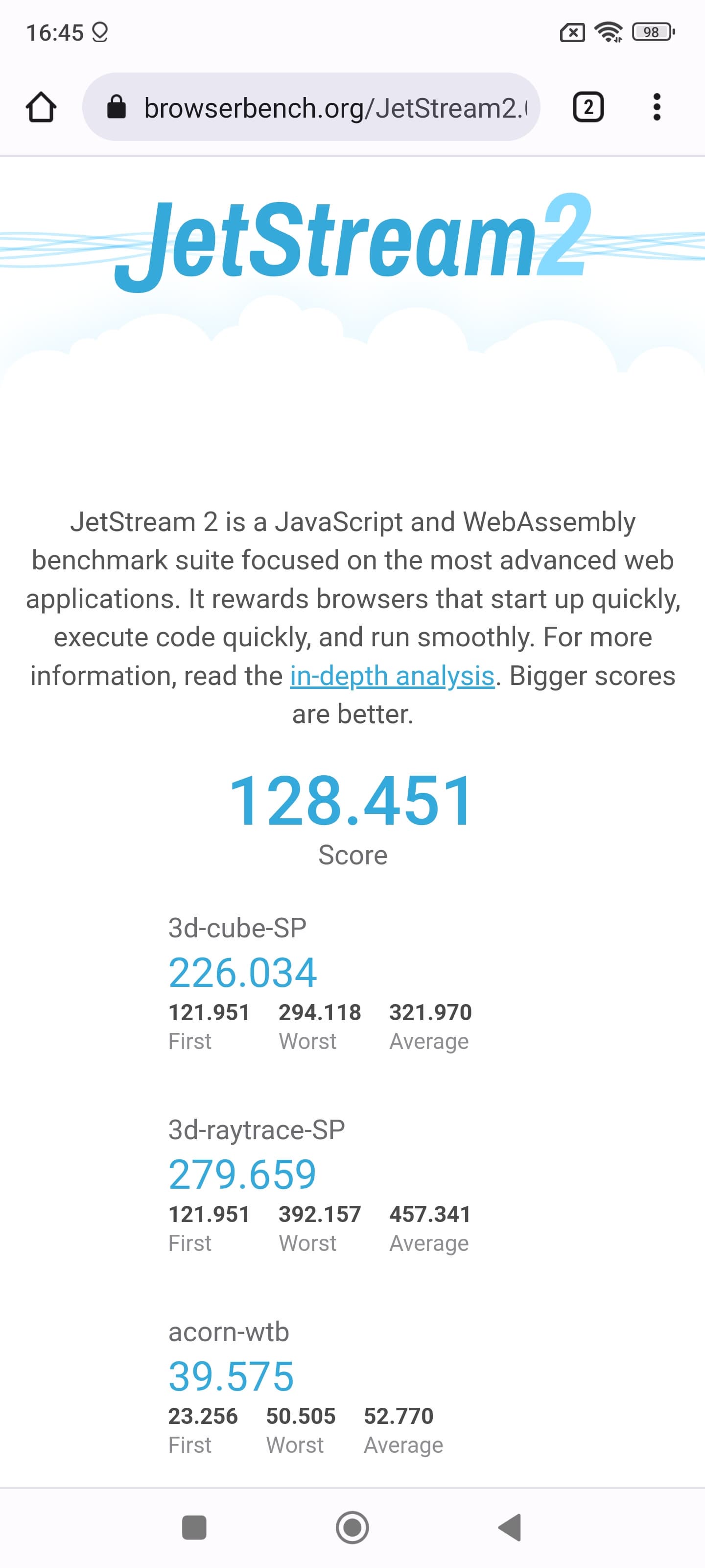| JetStream (больше — лучше) | 128 | 72 | 85 | 65 | 161 |