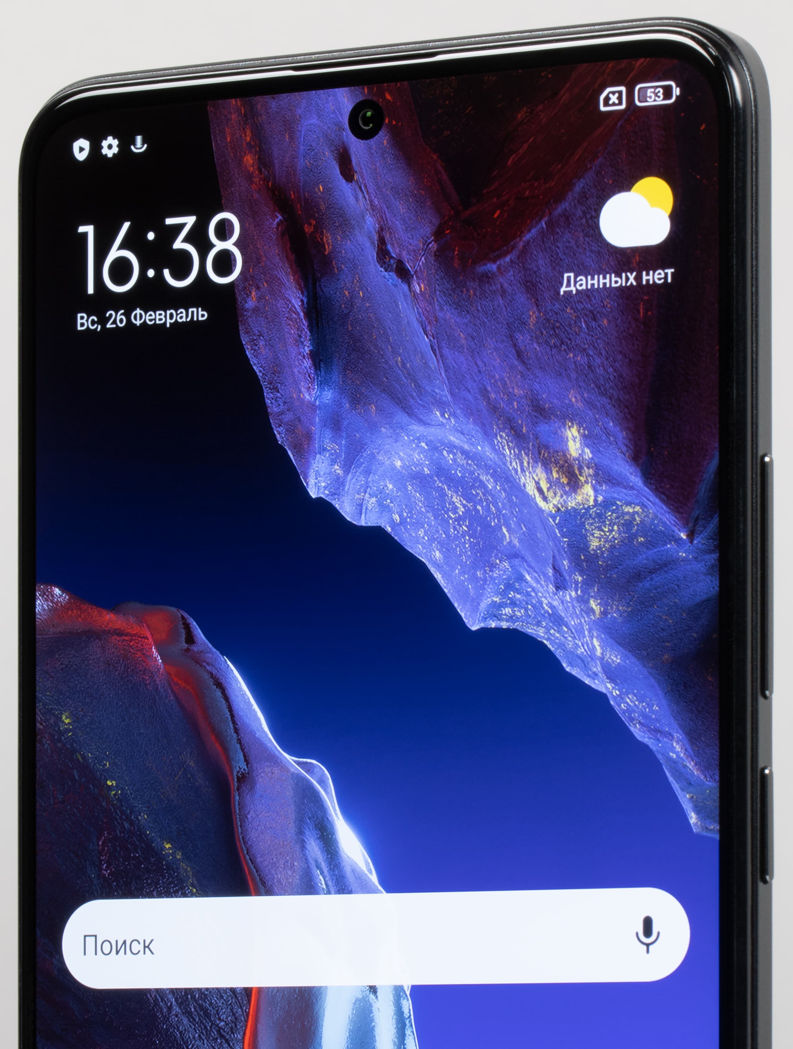 Фронтальная камера установлена сверху по центру за круглым вырезом в матрице экрана. Светодиодного индикатора событий спереди нет.