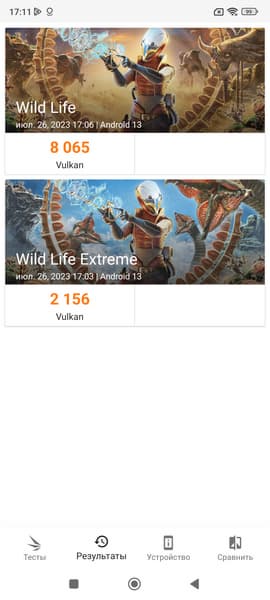 | 3DMark Wild Life Vulkan (больше — лучше) | 8065 | max | 5515 | 6642 | max |