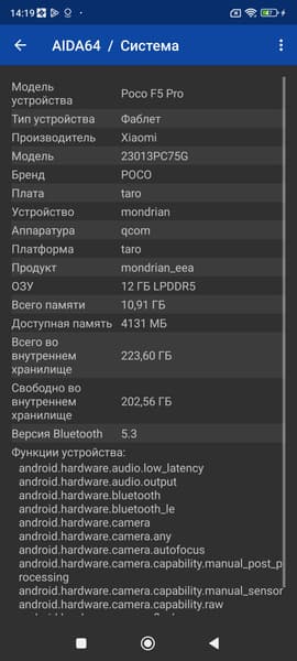 Qualcomm SM8550-AC Snapdragon 8+ Gen1 — это мобильная платформа топового уровня, флагман прошлого года. Она изготовляется по 4-нанометровому техпроцессу, ее мощи хватает для всех без исключения задач и для самых требовательных игр. Для Poco F5 Pro оснащение столь мощной аппаратной платформой является одним из ведущих факторов («киллер-фичей»), привлекающим к нему самое пристальное внимание.