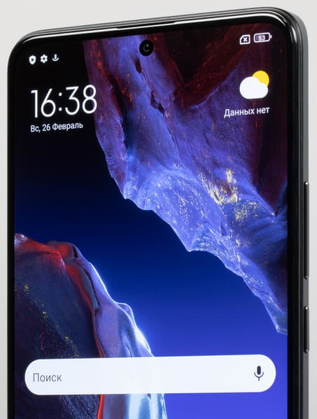 Poco F5 Pro получил своеобразный «модифицированный» дизайн, где модные и актуальные плоские и широкие бока сочетаются со старомодными загнутыми краями задней стенки, которая здесь вовсе не плоская. Это удачный дизайн, поскольку он позволяет крепко удерживать смартфон за всё еще довольно широкие бока, а нижняя часть корпуса в форме «лодочки» при этом более комфортно ложится в ладонь.