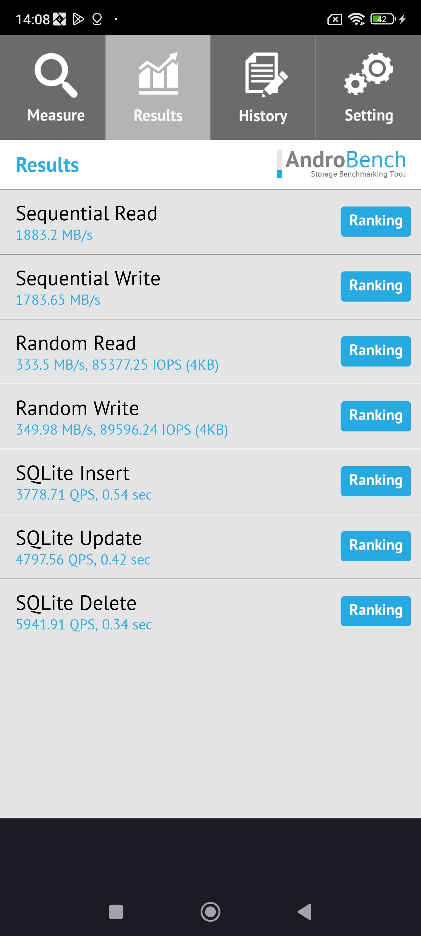 Результаты теста AndroBench на скорость работы с памятью: