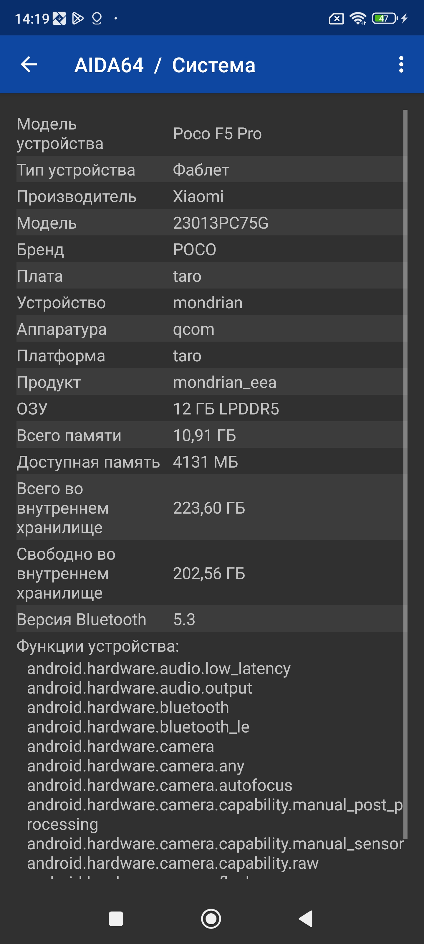 В качестве программной платформы смартфон Poco F5 Pro использует версию ОС Android 13 с собственной оболочкой MIUI 14 в специальной версии для серии Poco. Это привычный китайский интерфейс со множеством самых разнообразных дополнительных настроек и функций. Опять огромное количество предустановленных сторонних программ, которые тут же начинают сами себя рекламировать всплывающими некстати сообщениями. Шторка уведомлений не разделена на две части. Доступ к сервисам Google и магазину Google Play на месте.